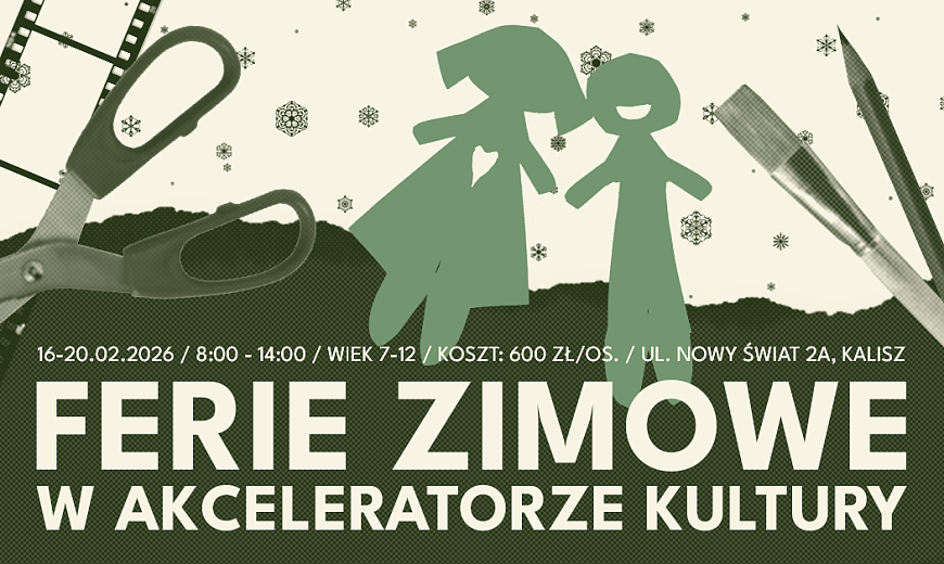 Półkolonie w Akceleratorze Kultury w Kaliszu (ul. Nowy Świat 2a) prowadzone będą od 16-20 lutego w godz. 8.00 - 14.00. Organizatorzy zadbali o to, aby czas spędzony przez najmłodszych wypełniony był zajęciami pobudzającymi wyobraźnię dzieci i ich kreatywność. Na uczestników czekają m.in.: warsztaty artystyczne, seanse kinowe, planszówki i gry integracyjne oraz kreatywne zabawy i wiele innych niespodzianek.