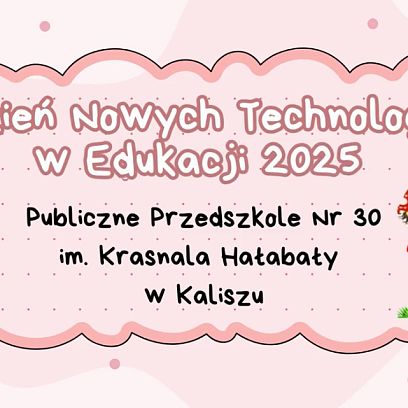 20 października 2025Miasto Kalisz z wielką radością informujemy, że Publiczne Przedszkole nr 30 im. Krasnala Hałabały w Kaliszu zostało laureatem ogólnopolskie...go konkursu organizowanego przez Ministerstwo Edukacji Narodowej pod nazwą „Dzień Nowych Technologii w Edukacji 2025”. -