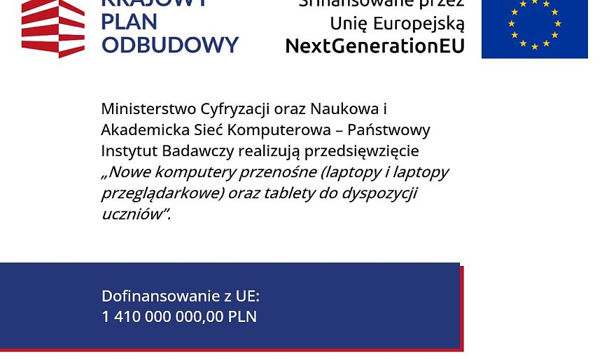 Na realizację zadania w ramach Krajowego Planu Odbudowy i Zwiększania Odporności (KPO), Polska otrzymała dofinansowanie z Unii Europejskiej w wysokości 1 410 000 000,00 PLN.