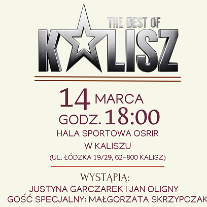 09 marca 2026Justyna Garczarek, Jan Oligny i Małgorzata Skrzypczak wystąpią w hali OSRiR, w najbliższą sobotę, 14 marca. Koncert będzie kolejną odsłoną c...yklu "The Best of Kalisz". -