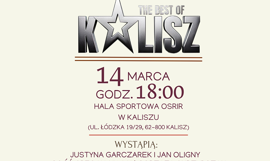 Na kolejną odsłonę cyklu "The Best of Kalisz" organizatorzy zapraszają w najbliższą sobotę, 14 marca, do hali OSRiR przy ulicy Łódzkiej. Koncert rozpocznie się o godzinie 18.00.