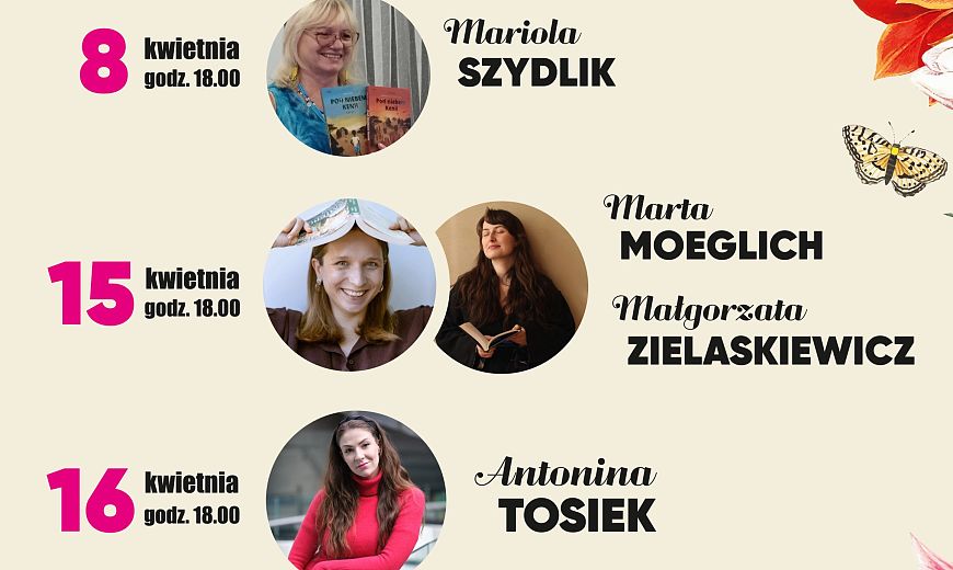 Z kolei 15 kwietnia, o swoim pisarstwie opowiedzą dwie autorki pochodzące z Kalisza – Marta Moeglich i Małgorzata Zielaskiewicz. Marta pisze kryminały, których akcja dzieje się w belgijskim miasteczku ("Śmierć i belgijska czekolada", "Morderstwo o zapachu kawy"), a Małgorzata wydała właśnie komediową, okraszoną szczyptą magii książkę "Stasiek, jeszcze chwilkę".