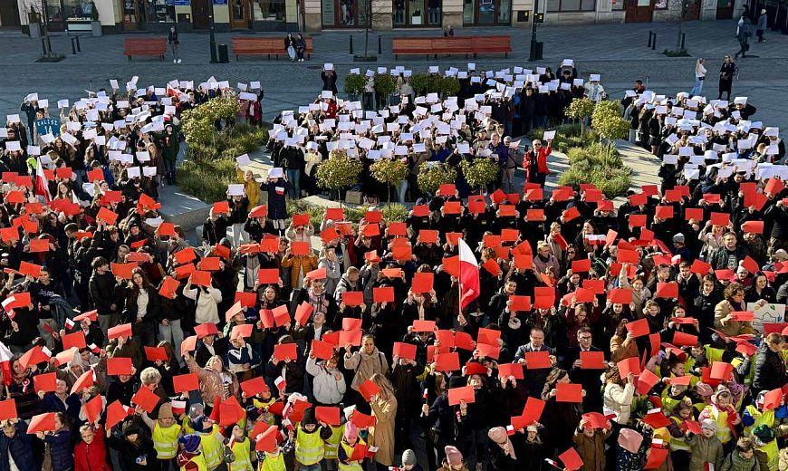 Włodarz miasta szczególnie podziękował za zaangażowanie szkołom, których uczniowie licznie zgromadzili się przed ratuszem. Przypomniał też, że raz wywalczona wolność nie jest dana na zawsze – należy ją szanować i jej strzec.