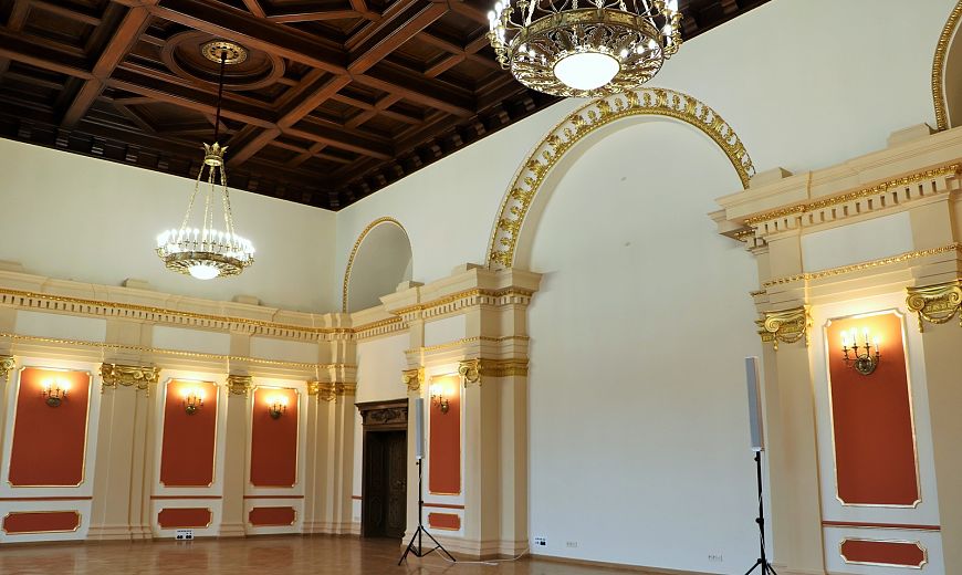 Dzięki badaniom konserwatorskim prowadzonym m.in. przy pomocy mikroskopu udało się komputerowo dobrać kolorystykę zgodną z tą, w jakiej sala była pomalowana pierwotnie.