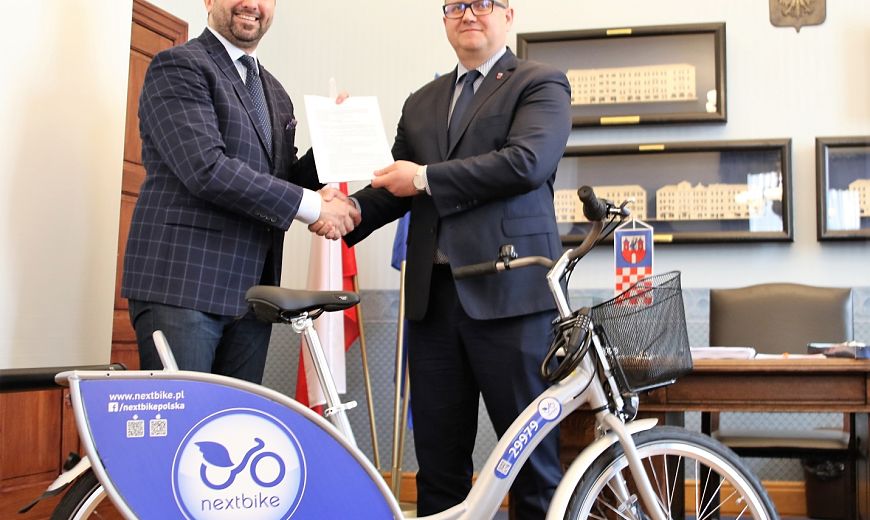 Już od 1 maja na ulice naszego miasta powróci Kaliski Rower Miejski. Dziś prezydent Kalisza Grzegorz Sapiński podpisał umowę z Tomaszem Wojtkiewiczem, prezesem firmy Nextbike Polska, która jest operatorem kaliskiego systemu. W spotkaniu udział wzięli także Jakub Giza, specjalista ds. relacji z samorządami firmy Nextbike, Tomasz Ludwiczak, dyrektor Miejskiego Zarządu Dróg Komunikacji, i Marcin Fingas, zastępca dyrektora ds. komunikacji MZDiK.