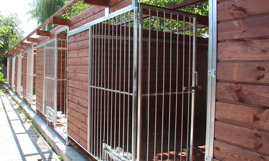 Boksy, o wymiarach 3 x 3 m, zostały zbudowane według najnowszych standardów. Ich wielkość jest dostosowana do wysokości psów. Pomieszczenia są drewniane, stoją na betonowych podestach. Frontowe ściany zostały częściowo zabudowane, co zapewnia zwierzętom ochronę przed wiatrem i słońcem.
