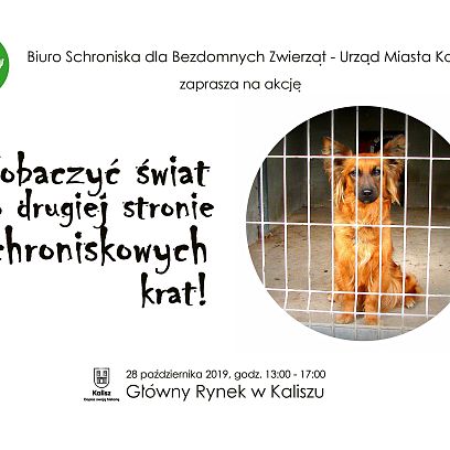 25 października 2019Schronisko dla bezdomnych zwierząt w Kaliszu zaprasza na akcję „Zobaczyć świat po drugiej stronie schroniskowych krat!”. Odbędzie się ona w...poniedziałek, 28 października, między godzinami 13:00 a 17:00 na kaliskim Głównym Rynku. -