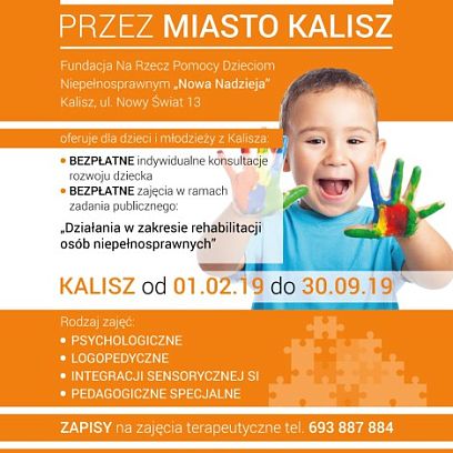 24 marca 2019Do 30 września skorzystać można z bezpłatnych konsultacji i zajęć w fundacji Nowa Nadzieja w Kaliszu. Program kierowany jest do dzieci i mło...dzieży z naszego miasta. -