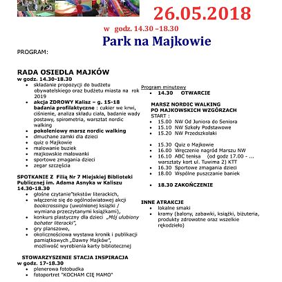 23 maja 2018„ZDROWO, KOLOROWO i SPORTOWO” to hasło tegorocznego festynu „Na Majkowie w maju”. Wspólna zabawa w najbliższą sobotę potrwa od 14:30 do 18:3...0. -