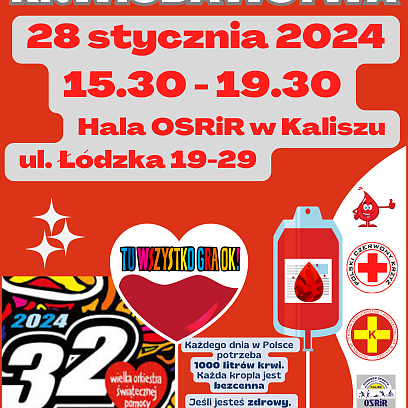 22 stycznia 202428 stycznia podczas 32. finału WOŚP odbędzie się akcja poboru krwi. Ambulans stanie przy hali widowiskowo-sportowej OSRiR w godz. 15:30-19:3...0. -