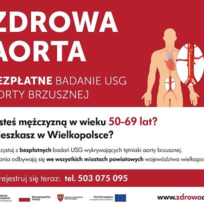 31 maja 2022Zapraszamy do udziału w bezpłatnych badaniach USG aorty brzusznej, które zostaną przeprowadzone 16 lipca, w poradni kardiologicznej Szpitala...Zespolonego im. Ludwika Perzyny w Kaliszu, przy ul. Poznańskiej 79. -