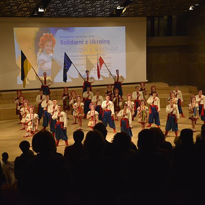 21 kwietnia 2022Były ogromne emocje, łzy wzruszenia i słowa podziwu dla profesjonalizmu artystów. Tak najkrócej podsumować można koncert zespołu tanecznego...„Słoneczko” Szkoły Sztuki Choreograficznej w Żytomierzu. Ukraińscy wykonawcy, którzy wystąpili 20 kwietnia w Auli UAM, w widowisku pt. „Solidarni z Ukrainą”, zaprezentowali niezwykle emocjonujący, wymagający ogromnego kunsztu program, w którym znalazły się tańce ukraińskie, polski mazur, a także układy z innych rejonów Europy i świata. -