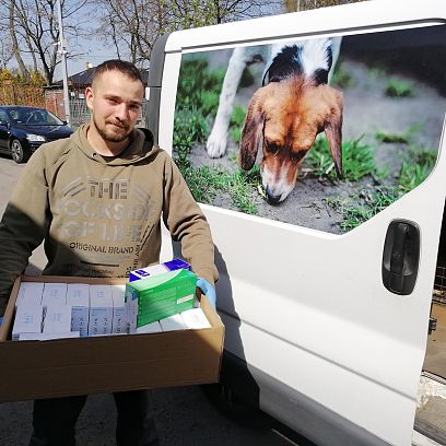 16 kwietnia 2020Pracownicy Schroniska dla bezdomnych zwierząt dowieźli do Domu Pomocy Społecznej kolejną partię środków ochrony osobistej. -