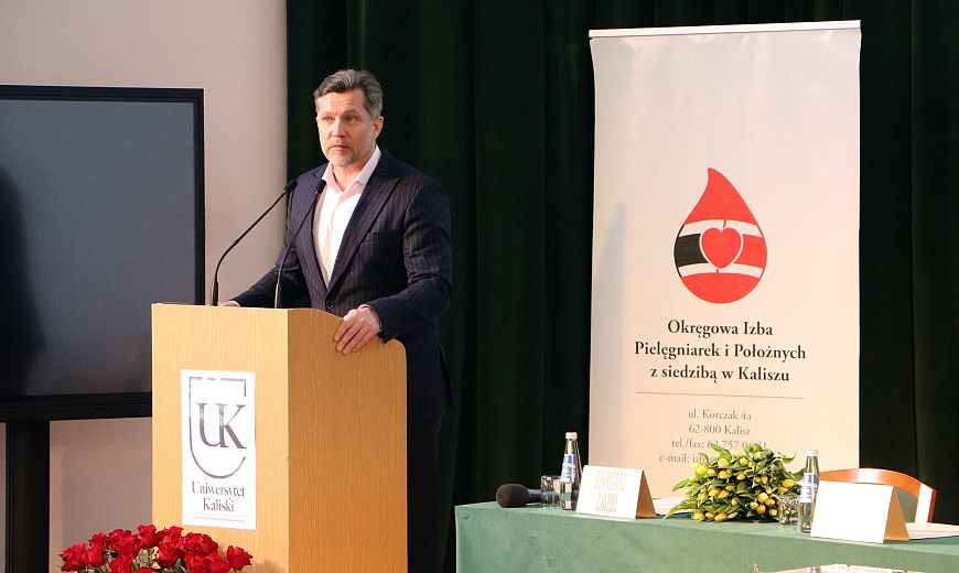 Marek Przybył, przewodniczący Okręgowej Izby Pielęgniarek i Położnych w Kaliszu, podsumował miniony rok i omówił aktualne problemy personelu medycznego. Podkreślił również bardzo dobrą współpracę z Miastem oraz Uniwersytetem Kaliskim.