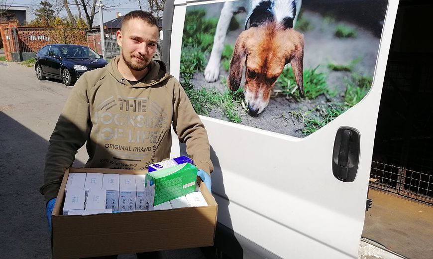 Pracownicy Schroniska dla bezdomnych zwierząt dowieźli do Domu Pomocy Społecznej kolejną partię środków ochrony osobistej.