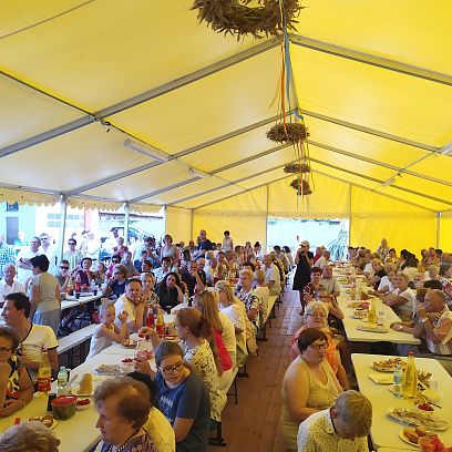 Dożynki tradycyjnie zorganizowano na placu przy siedzibie Ochotniczej Straż Pożarnej. Rozpoczęło je symboliczne przekazanie bochna chleba. Po oficjalnej części dożynek gości zaproszono na poczęstunek i do zabawy przy muzyce. Sporo atrakcji czeka też na najmłodszych, którzy mogą bawić się na dmuchanych zamkach lub przejechać konno. Uroczystości przy OSP poprzedziła msza święta dziękczynna w kościele pw. św. Michała Archanioła, skąd uczestnicy uroczystości przeszli w dożynkowym korowodzie.