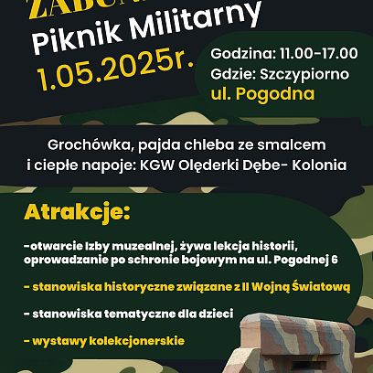 1 maja 2025 roku zapraszamy na ul. Pogodną 6 w Kaliszu, na zwiedzanie polskiego schronu bojowego z 1939 roku. Obiekt posiada zrekonstruowaną izbę bojową i farbomaskowanie. Ponadto zobaczyć będzie można wystawy militariów na ekspozycjach zewnętrznych, grupy rekonstrukcyjne, zabytkowe auta. Będzie serwowana grochówka i chleb ze smalcem. Wydarzenie będzie funkcjonowało w godzinach 11-17. Wstęp wolny.
